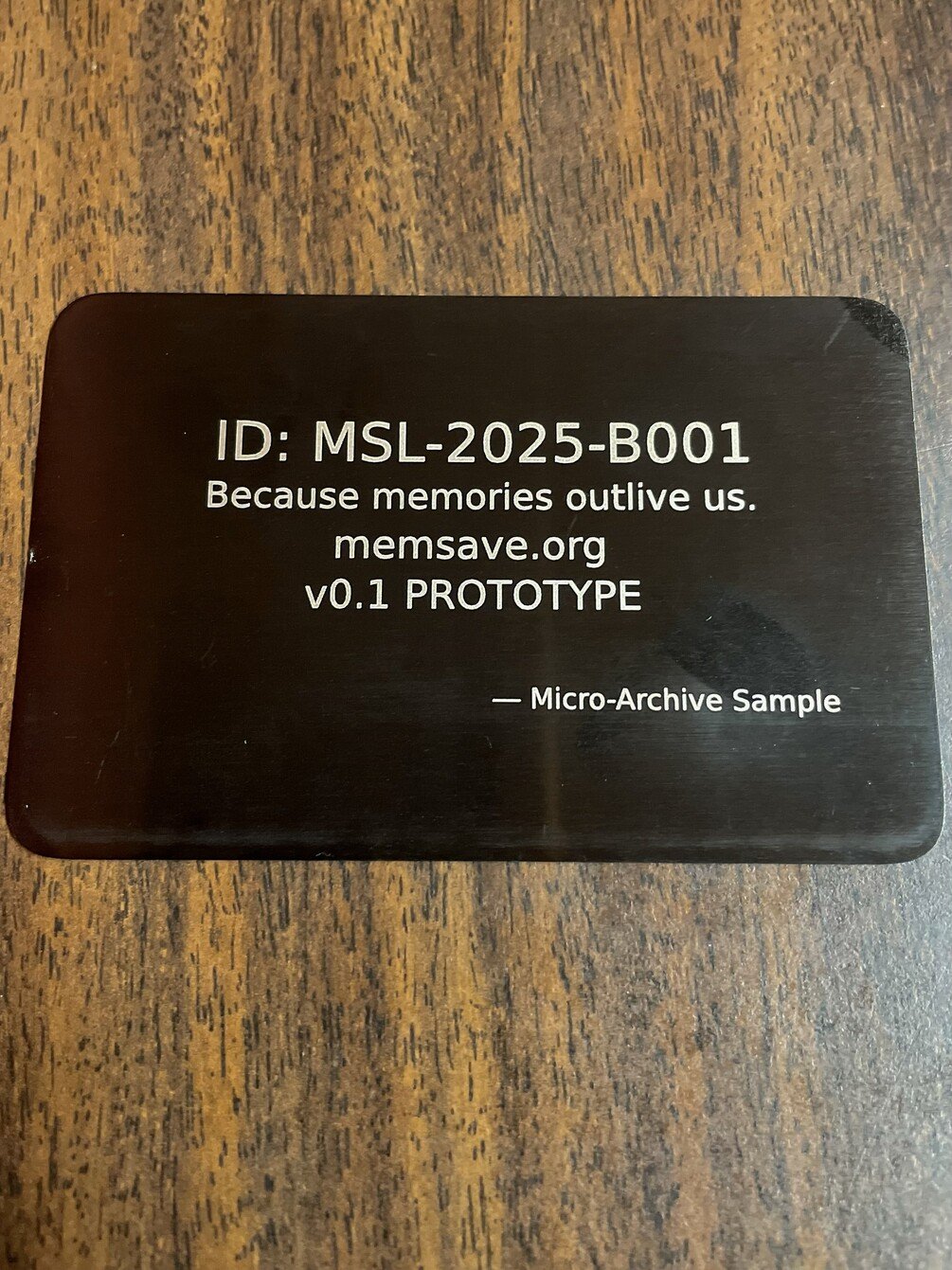 You will receive one individually numbered v0.1 metal prototype card plus a digital founders certificate.