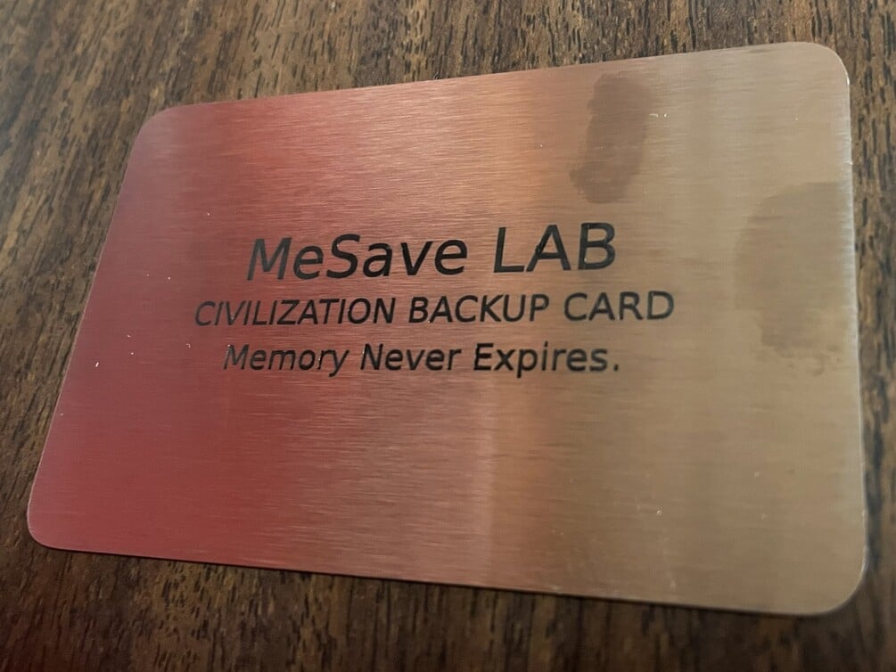 MeSave LAB v0.1 Prototype — Civilization Backup Card (1 of 10)